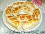 Coloque no copo do liquidificador, a água morna, o fermento esfarelado, o leite em pó, o açúcar, o sal e os ovos. Bata para se agregarem e reserve. Em um recipiente, coloque a farinha(reserve um pouco) e a mistura reservada. Mexa com a espátula (neste momento, se necessário, utilize a farinha reservada). Sove sobre uma superfície enfarinhada. Deixe descansar por 10 a 15 minutos coberta com um pano de prato. A seguir, abra porções da massa com auxílio do rolo (polvilhe farinha enquanto abre a massa). Corte tiras de aproximadamente 2 dedos de largura. Enrole em uma salsicha. Coloque em uma assadeira retângular untada e polvilhada. Pincele com a gema. Leve ao forno pré-aquecido 180°C a 200°C por 20 a 25 minutos.