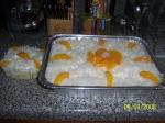 Fiz com bolacha Maria, porque aqui não achei champanhe. Molhei as bolachas com leite, leite de côco e um pouco da calda do pêssego. Coloquei camadas de bolacha, o creme, o pêssego picadinho, mais bolachas e mais um pouco do creme. Bati 500grs. de creme de leite fresco, ao qual adicionei 2 colheres (sopa/rasas) de açucar e depois misturei uma lata de creme de leite (s/soro). Cobri o pavê com esse creme, com côco ralado e enfeitei com pedaços de pêssego.