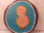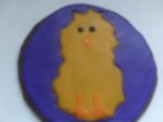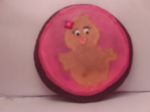 TIngi a massa de biscoito com corante soft gel marrom com laranja,assei 2 tampinhas redondas pra colocar no fundo e 6 redondo com buraco no meio,depois de assados e frios,colei com glacê e e preenchi com trufa.Espetei a flor e meu filho levou hj para a professora!!!