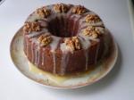 Savarin com Nozes Para o savarin 150 g. de manteiga a temperatura ambiente 150 g de açúcar 1 colher de chá de essência de baunilha 3 ovos 1 colher de chá de fermento para bolo 200 g de farinha de trigo 100 g de nozes moídas Para o glacê 200 g açúcar 100 ml água 1 taça de conhaque Modo de preparo: Coloque o açúcar em uma tigela acrescente a água aos poucos até dar o ponto de glacê. Por último o conhaque. Para decorar 150 g chocolate branco derretido no microondas 8 nozes inteiras Forma de 22 cm de diâmetro, untada com manteiga e enfarinhada