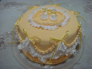 Oieee, chegou o dia do cha de bebe, fiz o bolo conforme o q tinha feito na aula de decoração.