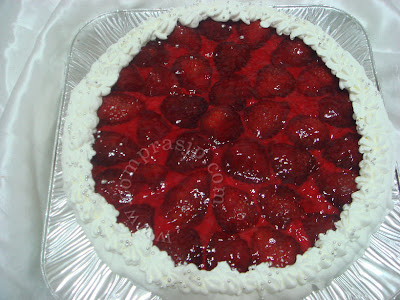 Cobertura: Ferva a água, acrescente as gelatinas, deixe tomar consistencia de clara para colocar a gelatina sobre a torta.