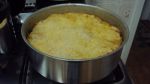 colocar metade da massa o recheio espalhar e colocar o restate da massa por cima , polvilhar queijo ralado e farinha de rosca.