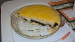 Misturar todos os ingredientes colocar metade da massa em um refratário untado com manteiga e farinha de rosca.