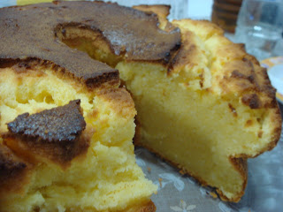Modo de preparo: Bater tudo no liquidificador. Por último acrescentar o fermento. Untar uma assadeira grande ou forma com buraco no meio (grande). Polvilhar com farinha de trigo. Colocar em forno pré-aquecido, começando a esquentar, manter o fogo médio. Assa em mais ou menos 30 a 40 minutos.Opcional: colocar 1 colher(sobremesa) de erva-doce à massa.
