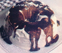 Para o molho: Parta o chocolate em pedacinhos para dentro de um tachinho, junte o açúcar e o leite e leve ao lume muito fraco, mexendo sempre com colher de pau até levantar fervura. Retire do lume e conserve quente até ao momento de servir. Quando for servir, aqueça o exterior da forma e desenforme para um prato ou bandeja. Regue com o molho e sirva imediatamente.