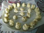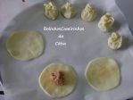 Pincele os discos com ovo e recheie com um pouco de carne. Feche cada círculo formando uma trouxinha. Tente fazer com que fiquem todas iguais (vejam as fotos)