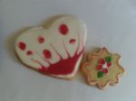 Não achei na minha cidade corante gelbranco, para q o glacê ficasse masi branquinho... Usei o glacê real simples para o preenchimento (açúcar impalpável e água quente) e no contorno o glacê de clara, açúcar e limão (no início usei muito grosso, tive dificuldades pra contornar... depois dilui um pouco e ficou mais facil manippular).